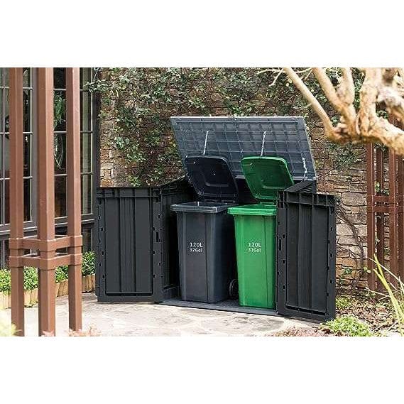 • Versatile outdoor storage for garden equipment, BBQ accessories or waste bins